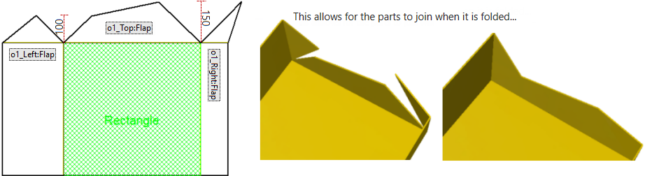 Override this setting on the Shape Property page to create angled flaps, as shown.