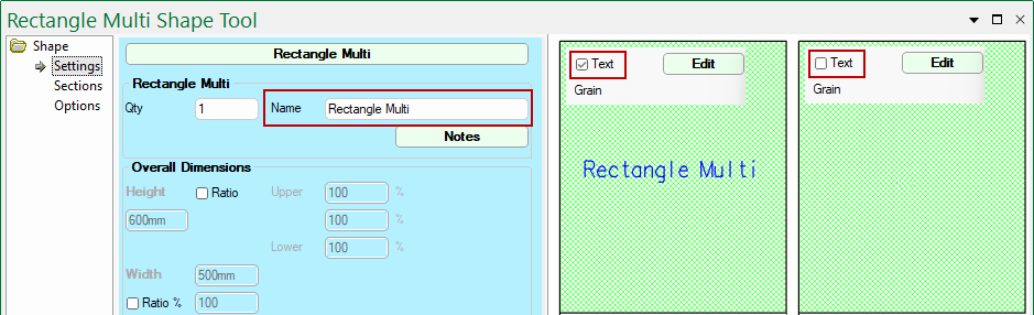 When the Text checkbox is enabled, the Shape Name is displayed by default but can be changed using the Edit button.