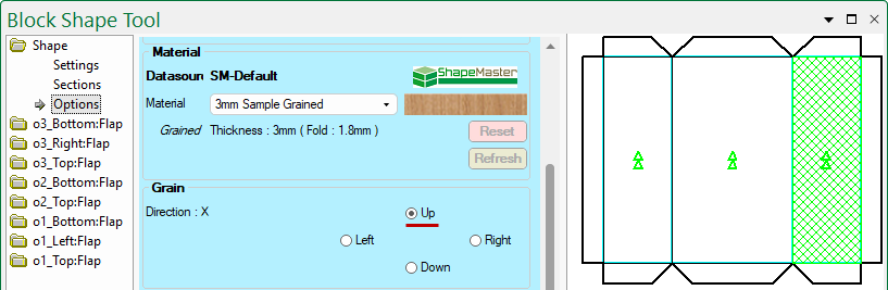 Whether a material is grained or not is designated in the Material definition - see Setup > General / Materials.