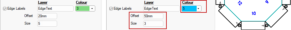 Colour - DXF colour of label on flaps. 0-8 can be selected from the drop list i.e. 0=Black, 5=Blue.