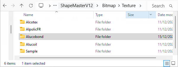 New image: <ShapeMaster folder>\Bitmap\Texture\Alucobond\Grained Sample.jpg
