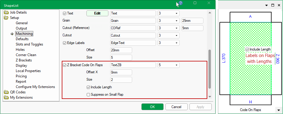 Z Bracket Code on Flaps - Tick to output the code on the flap (to be engraved/written)