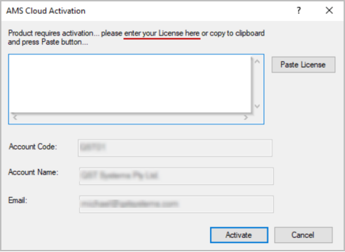 - 'Paste' your Activation Code into the white edit box and click 'Activate'