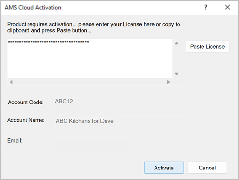 Version 12 and later: The Activation code will appear as a series of stars, to ensure that it cannot be copied.