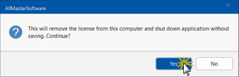 Click Yes and another message will confirm that the license has been released.