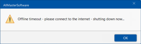 - Following this, there will be another popup stating that the 'Offline Timeout' has been reached and will shutdown.
