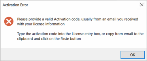 If you get an error similar to the below and it reads 'Please provide a valid Activation Code'...