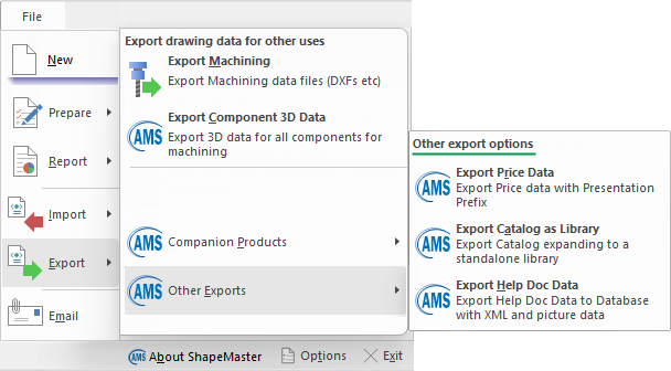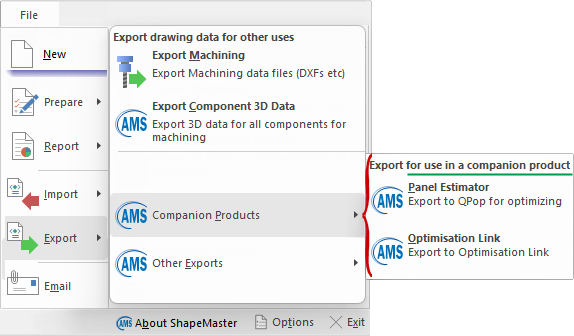 File > Export > Companion Products - Click to view menu