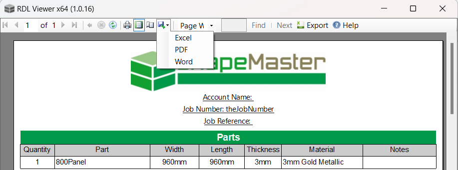 Once generated, you also have the option to export this to Excel, PDF or Word format -