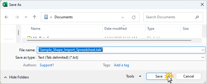 In this tutorial we will use Excel to create a data file and save it as a tab delimited file format, with a '.tab' extension and then import into ShapeMaster.