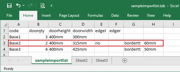 In this screen grab, we have selected the Base 2 door which came from row 3 of the sample file.