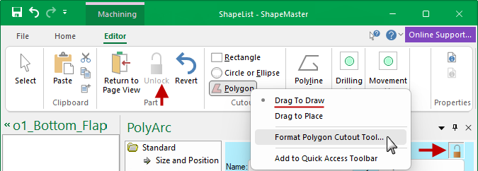 Before you can use the Editor facility, you first need to click on the Unlock command button.