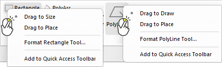 If you are drawing a line, such as a PolyLine (i.e. not a 2D shape), then instead of calling the first option Drag to Size it is called Drag to Draw.