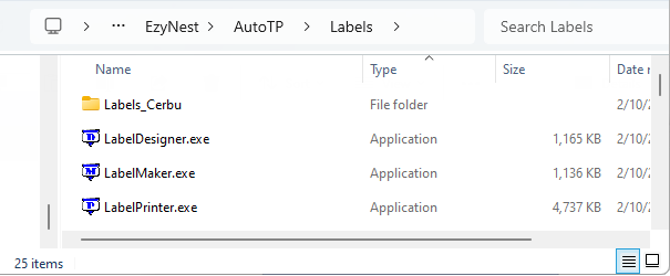 Exe files are located in the AutoTP/Lables folder (EzyNest 5 or earlier)