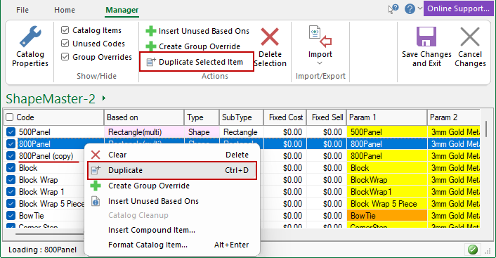 Sometimes, every single catalog item in the group needs to be changed in the same way. For example, the Based on library shape may have a depth of 313mm but in your business, every shape of this kind actually is made with depth 363mm. In this case, instead of overriding the depths in each catalog item one at a time, we can do it once, using a ‘Group Override’.