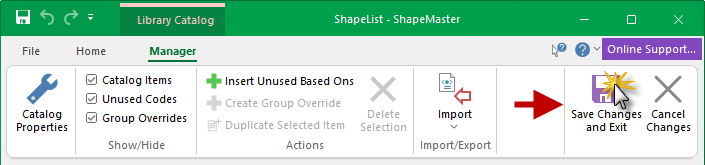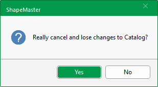 Cancel changes if you decide not to save any of the changes made. A message will be presented to ensure that you really want to lose all changes to the Catalog.