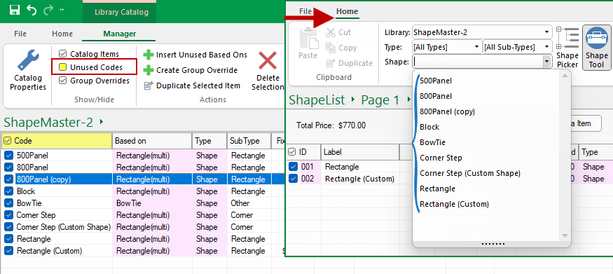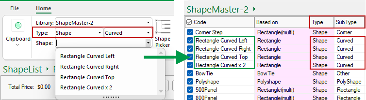 You can limit the Shape selection on the Home tab by enabling only the Codes required by your company, as shown. Do this by simply...