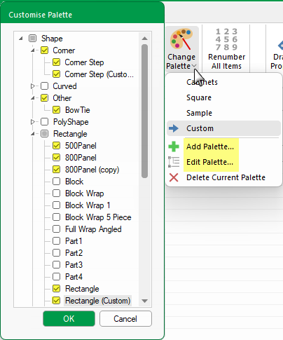 To create a custom Palette, click on the 'Add Palette...' option from the right click menu, as shown.