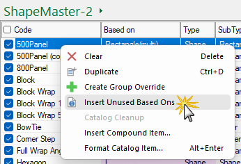 Another way to Insert Unused Based Ons is by using the right click menu.