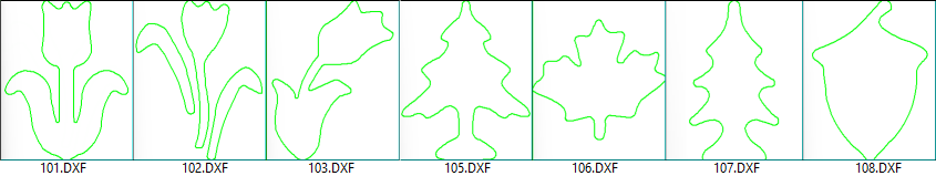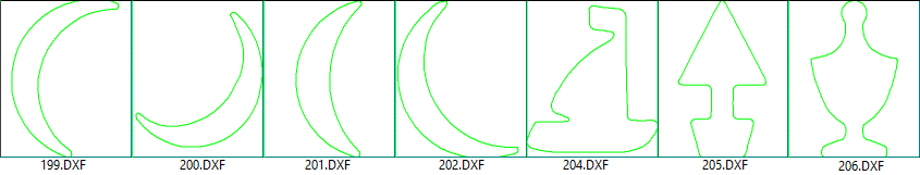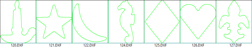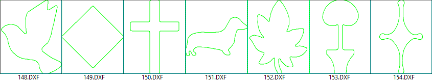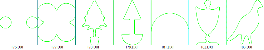 The following DXF's are supplied in the ...DXFCutouts/Samples folder.