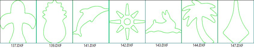 For a complete list of supplied DXF images, see DXF Cutout Samples below.