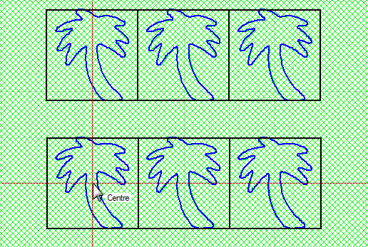 The colour of the Reference point for these examples has been set to red (1) and cutout to blue (5) for clarity - see available DXF Colours.