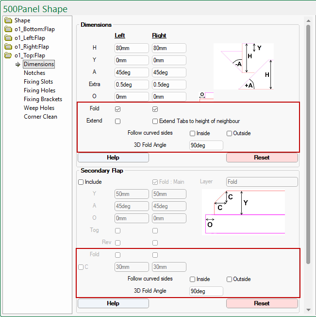 A 3D Fold Angle selection is also available for both the Main and Secondary Flaps.