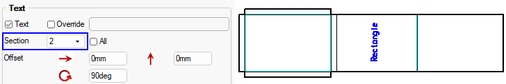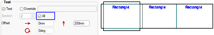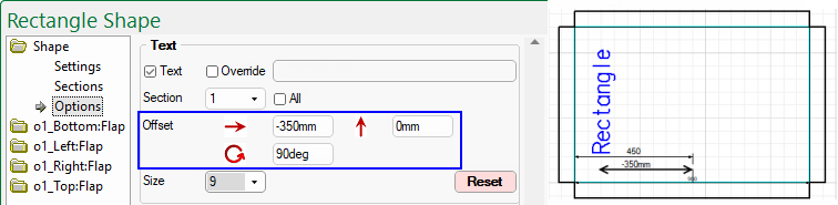 In this example the shape name has been moved to the Left 350mm from the centre i.e. -350mm and rotated 90 degrees.