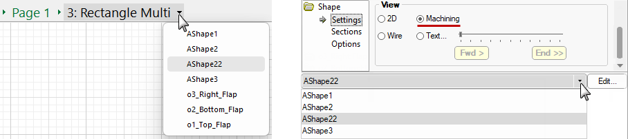 When in Current Editor mode (shown below left), the Breadcrumbs Bar drop list will display the Section Origin (Lower 2) as AShape22.