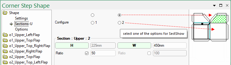 The Shape > Sections page allows you to Configure each section of the selected Shape.